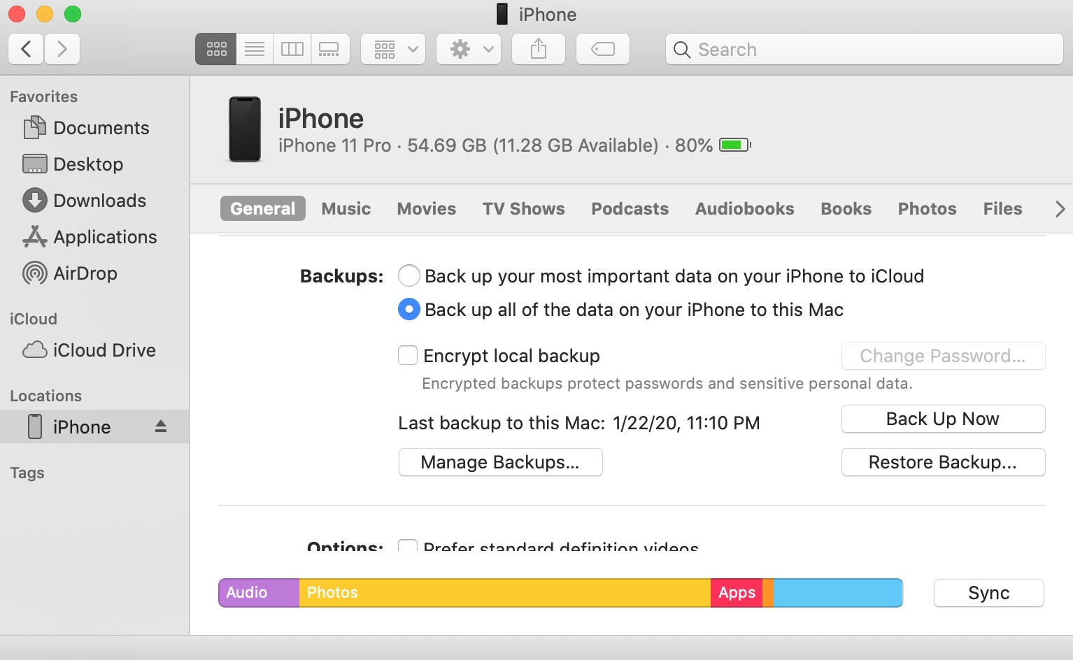 Backup Your iPhone Using Finder (Macs Running Catalina 10.15 or newer)